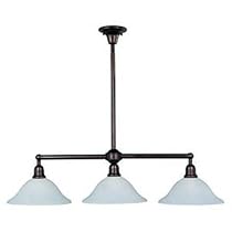 11093SVOI Finish: Oil rubbed bronze Pictured in oil rubbed bronze with soft vanilla glass Features: -Three light island pendant. -Bel Air collection. -Available in oil rubbed bronze and satin nickel finishes. -Soft vanilla glass. -Suitable for sloped ceilings. -Supplied with one 6'' and two 12'' stems. -Additional stems available: 6'' order - STR10006OI SN 12'' order - STR10012OI SN. -Includes 12' of wire. Specifications: -Accommodates: 3x100W medium base bulbs (not included). -Overall dimensions: 44'' H x 13'' W x 44'' L.