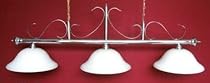 Quantity of 3 - 15" white glass shades - 59 " Chrome plated metal rod - Mounting hardware and instructions included Adjustable chain for prefered hanging distance from ceiling - Recommended for 7 or 8 foot pool tables - Uses 3 60 watt bulbs (bulbs not included) - UL listed - Can install hard wired or plug in with adaptor (adaptor not included) - A liscensed electrician is recommended for installation - Installation instructions included - Due to rod size UPS charges oversized weight